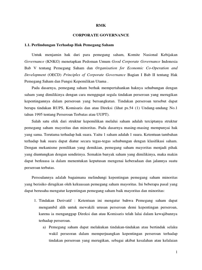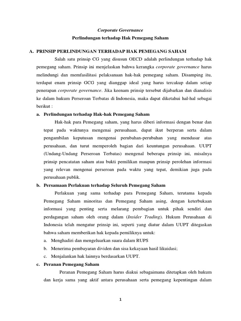 Prinsip Perlindungan Terhadap Hak Pemegang Saham